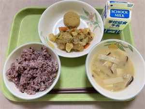 黒米ごはん イナムドゥチ 魚と野菜のあんかけ カラキチンスコウ 牛乳