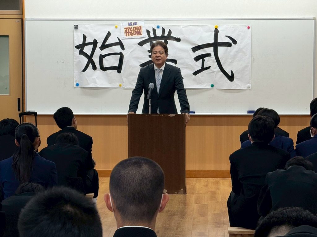 1月6日に始業式を行い、3学期を始業しました。各学年代表、生徒会代表より3学期始業にあたっての決意が述べられました。1学年代表は「勉強と部活動を頑張り飛躍の年にする」2学年代表は「学校のリーダーとして学校を引っ張る」3学年代表は「進路実現に向けて真剣に授業に向き合い、笑って卒業する」生徒会代表は「一人一人が1日1日を大切に、目標を持ち、成長を実感できる3学期に」とそれぞれ述べていました。学校長からは「脱皮・飛躍」の3学期キーワードを紐解きながら、「脱皮・飛躍を遂げるために、自分で、すぐに、簡単に、できることから続ける」ことの重要性について式辞を述べられていました。大宜味中学校生徒68名が「脱皮・飛躍」を遂げる3学期になってほしいと思います。